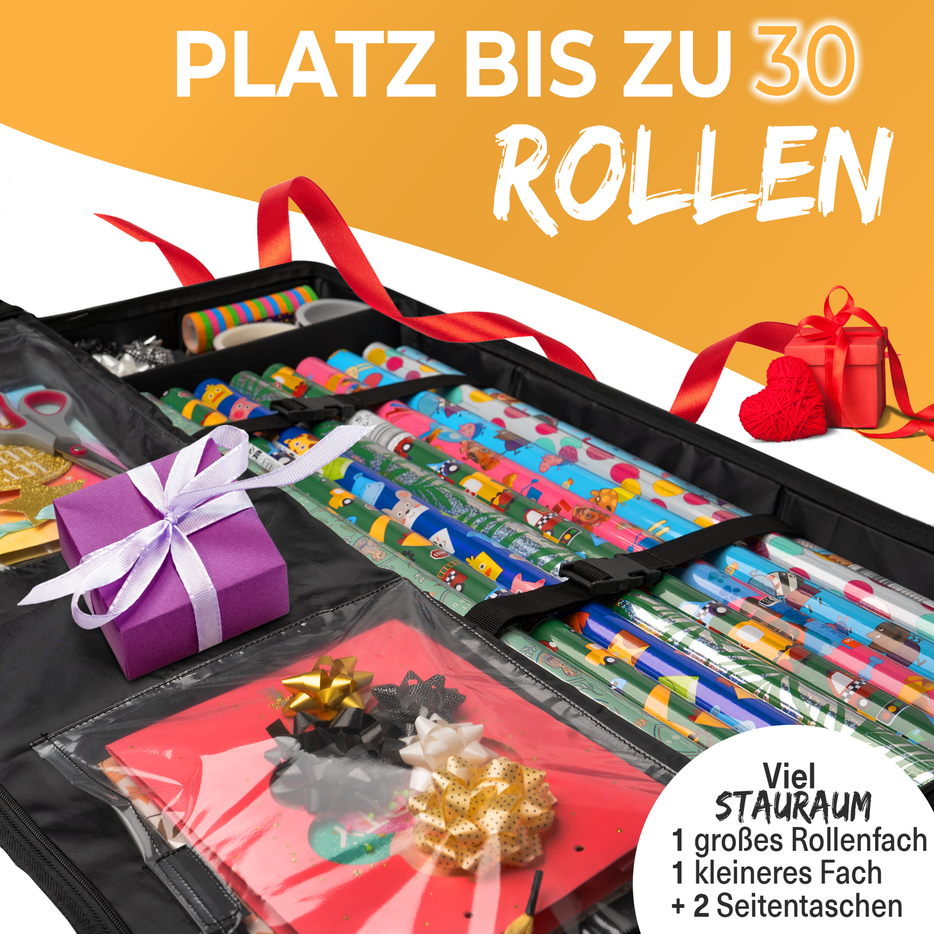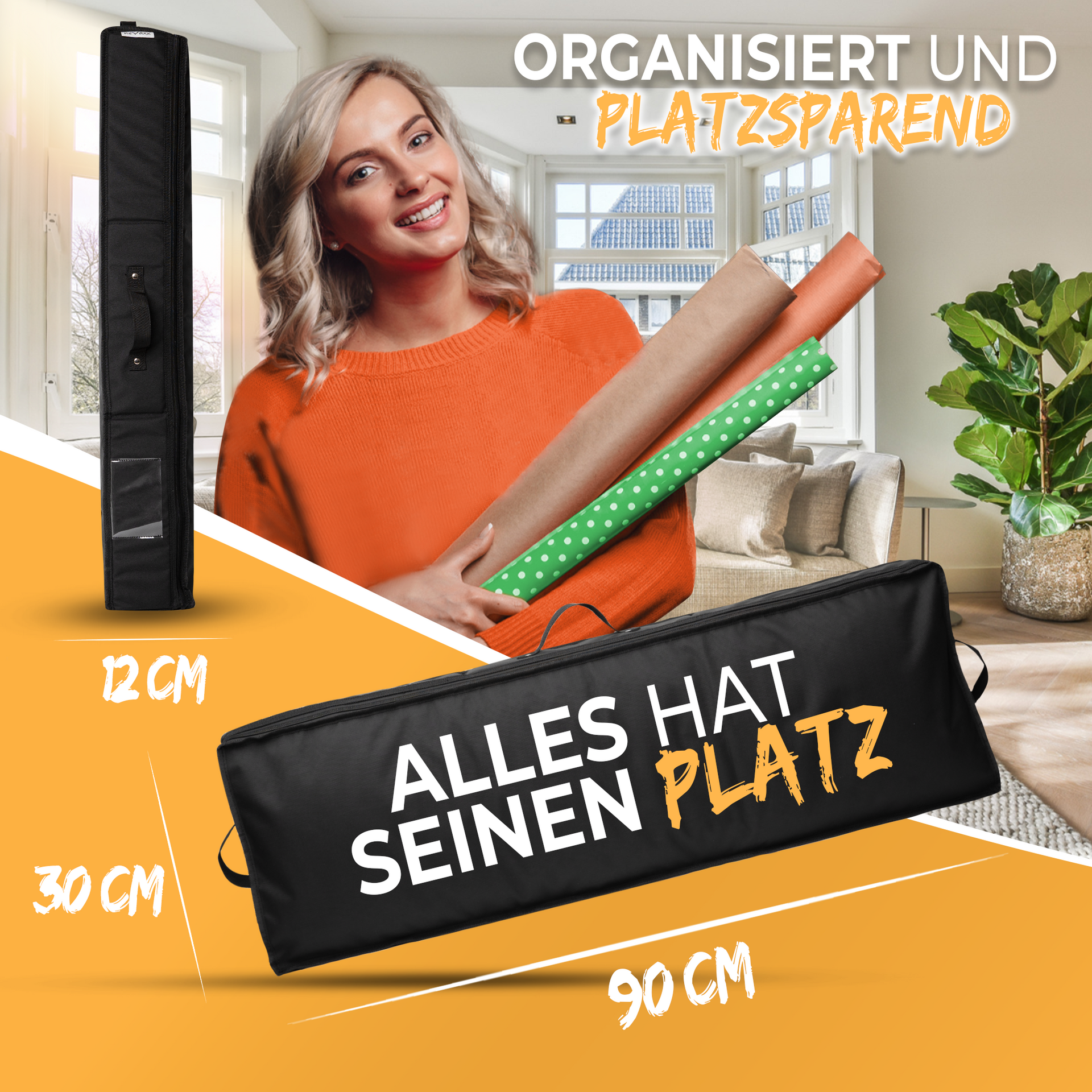 - 🎁 ORGANISIERT: Sie haben Probleme mit der Unordnung Ihrer Geschenkpapierrollen, dann können wir Ihnen mit unserer Aufbewahrungstasche für Geschenkpapierrollen helfen. Dank ihrer großzügigen Maße von 90x30x12 cm kann sie bis zu 30 Rollen vor Zerknittern und Verblassen schützen. Außerdem verfügt sie über zusätzliche Fächer für Geschenkzubehör Scheren, sodass Sie alles an einem Ort verstauen können