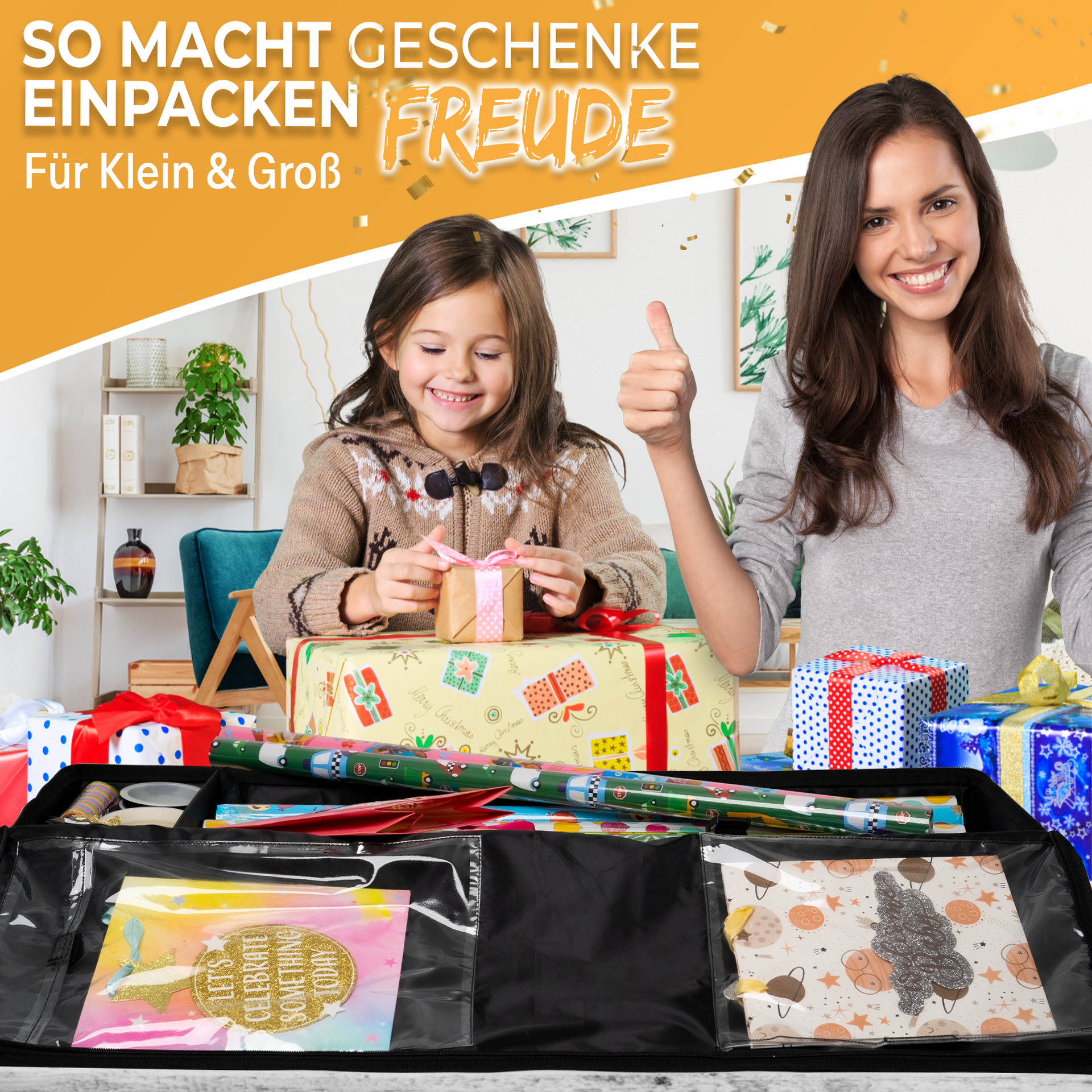 - 🎁 ZEITSPAREND:Mit unserem Geschenkpapierbox haben Sie alles griffbereit und sparen wertvolle Zeit beim Verpacken von Geschenken. Ein aufgeräumtes Zuhause bedeutet mehr Zeit und Energie für die wirklich wichtigen Dinge im Leben.