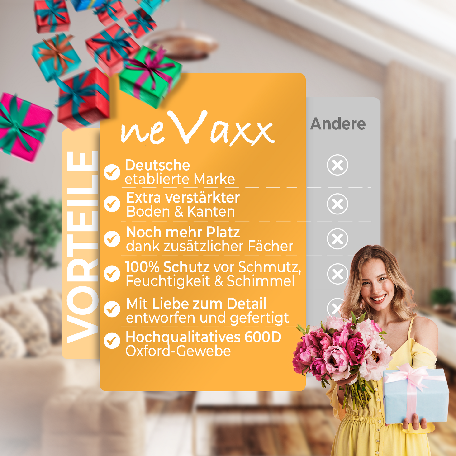 - 🎁 FLEXIBEL: Unser Geschenkpapier Organizer von neVaxx ist einfach genial! Sie können ihn ganz einfach zusammenklappen und problemlos verstauen, wenn sie ihn gerade nicht brauchen. Und das Beste daran Selbst im leeren Zustand behält die Aufbewahrungstasche dank ihres verstärkten Bodens und ihrer verstärkten Kanten ihre Stabilität und Langlebigkeit bei. Keine Sorge mehr vor schlaffen Taschen oder beschädigten Geschenkpapier.